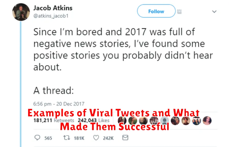 Analyzing successful viral tweets can offer valuable insights into what resonates with audiences. While virality is often unpredictable, certain elements frequently contribute to a tweet’s widespread success. Here are a few generalized examples and their potential success factors: